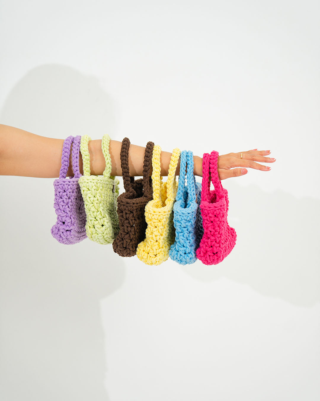 This small yet chic shoulder bag comes with a non-adjustable strap for a relaxed yet stylish look when worn over the shoulder. Its structured shape makes it easy to carry all your essentials like your phone, wallet, and keys. Made with 100% cotton milk yarn, it's lightweight and practical.